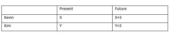 [Q11] The sum of Kim’s and Kevins ages is 18. In 3 years, Kim will be twice as old as Kevin. What are their ages now?