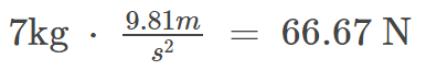 [Q6] A 7kg mass is suspended in a rope. What is the tension in the rope in SI?