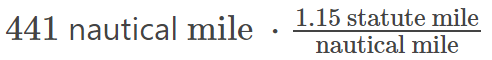 [Q7] A certain luxury ship cruises Cebu to Manila at 21 knots. If it will take 21 hours to reach Manila from Cebu, the distance traveled by the ship is nearly: